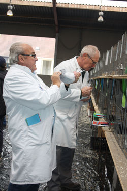 Expertise des jeunes sujets à Blandain, L'élevage Skapins y présenta 8 sujets : 4 béliers nains loutre brun (2 M et 2 F) et 4 béliers nains néerlandais siamois bleu ( 3 F et 1 M) . Les 8 furent jugés et tous étaient bons pour participer aux expositions.